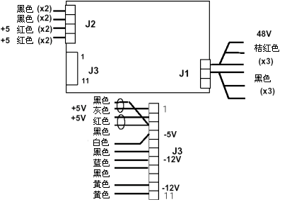 首先要將連接PSU與系統(tǒng)其它部分的電纜拆除。有兩個(gè)"鍬型連接點(diǎn)端"和一個(gè)"螺絲型連接端"連接器模塊,它們的固定螺絲可以通過(guò)PSU蓋的一條縫而觸及。這些連接器上所有電纜都應(yīng)拆除,電纜位置在圖8-1中詳述。將4個(gè)固定螺絲除下,將PSU從機(jī)箱中抽出。