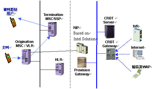 Gateway CRBT業(yè)務的主體——用戶,可以通過IVR、Internet、WAP或SMS-MO等手段進行業(yè)務注冊/注銷,回鈴音定制、修改、增加等操作,而所有這些操作都是通過CRBT