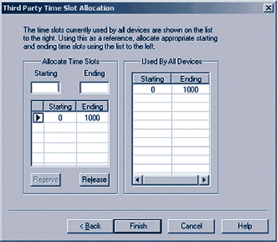在一個應用中可以使用NCM API動態(tài)分配時隙,本文檔規(guī)定鍵入0為最小值,鍵入1000為最大值。然后點擊保留,時隙范圍便顯示在清單中了。