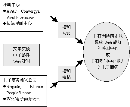 有一類從一個(gè)完全不同的角度適應(yīng)電子商務(wù)挑戰(zhàn)的新型服務(wù)商。這類服務(wù)商包括Bridge、Eliance、PeopleSupport 、Ziptone等一些你沒(méi)有聽(tīng)說(shuō)過(guò)名字的公司,不過(guò)可能馬上就能熟悉他們了。他們與點(diǎn)com公司的文化相適應(yīng),具有同樣的Internet發(fā)展速度,行動(dòng)敏捷,所以可以快速滿足客戶的新要求,并且具有一種“just do it” 的態(tài)度,不停留在傳統(tǒng)的探討和思考上。但是反過(guò)來(lái),這也許意味著他們還沒(méi)有一個(gè)強(qiáng)健的架構(gòu)或適應(yīng)呼叫中心的業(yè)務(wù)流程,同時(shí)意味著你絕對(duì)是第一個(gè)和他們一起合作的人 - 并且你必須幫助他定義一些事情。從某種意義上講,他們其實(shí)僅僅是將其人員外延了,這些人員既可處理客戶聯(lián)系又能運(yùn)用有效運(yùn)用所需的技術(shù)。