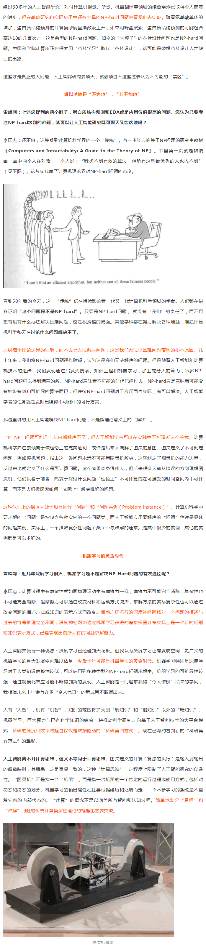 學(xué)術(shù)界的人工智能研究過分局限于約翰·麥肯錫的定義,也就是人工智能的目標是“像人”,并指出我們應(yīng)該突破對智能的狹義理解。這與AI要解決NP-hard級別難題有什么聯(lián)系?